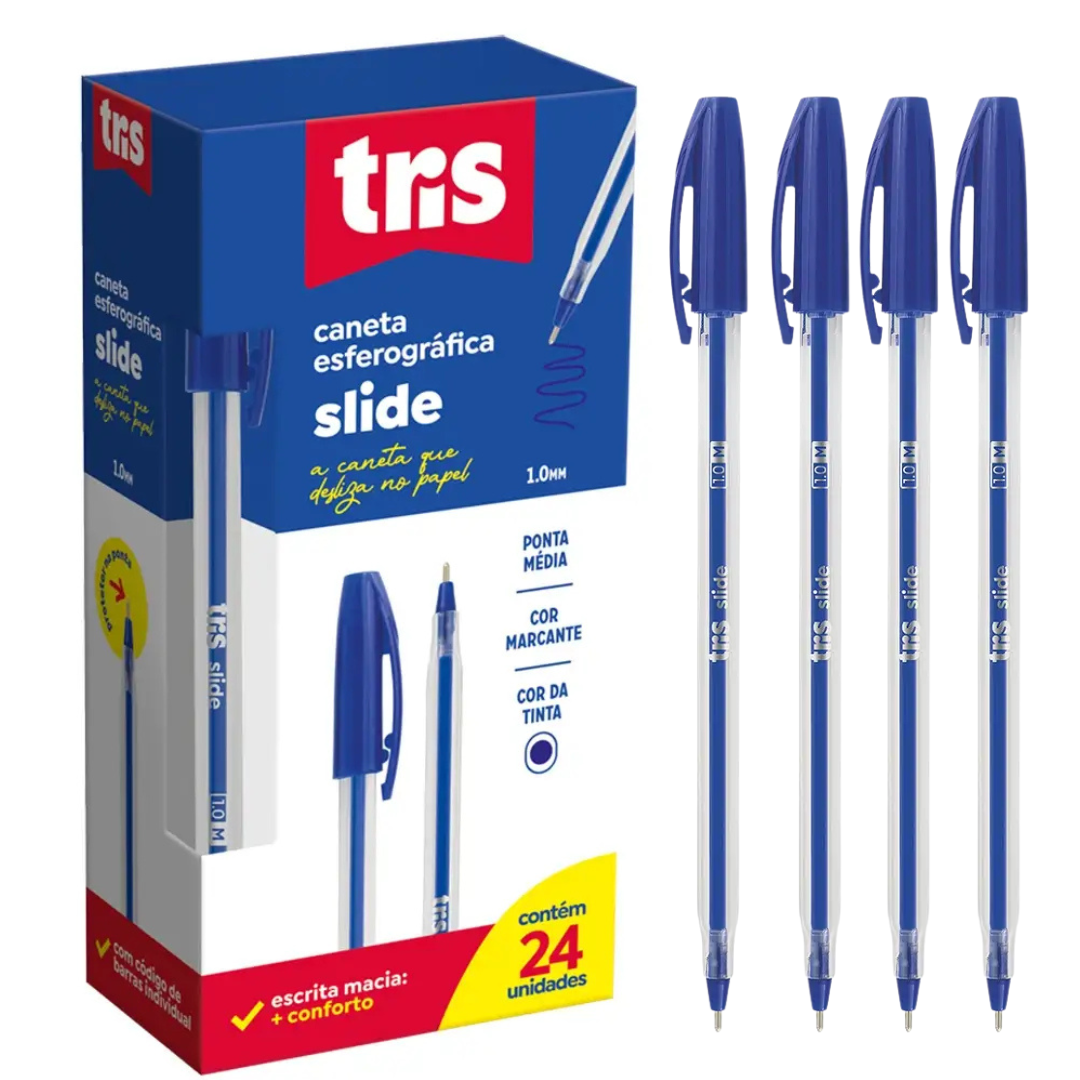 Caneta Esferográfica Slide - Azul - 1.0mm - Caixa C/24 un - Tris