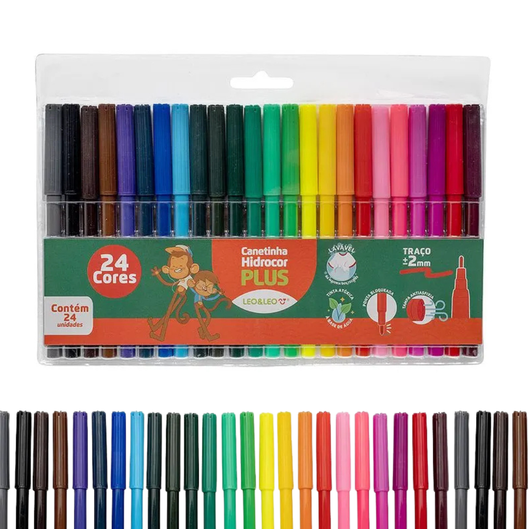 As Hidrocores 24 Cores Lavável Plus Leo e Leo são perfeitas para trazer vida e brilho aos seus projetos de arte, desenhos e trabalhos escolares. Com uma ampla seleção de 24 cores vibrantes, essas hidrocores oferecem possibilidades ilimitadas para a sua criatividade.