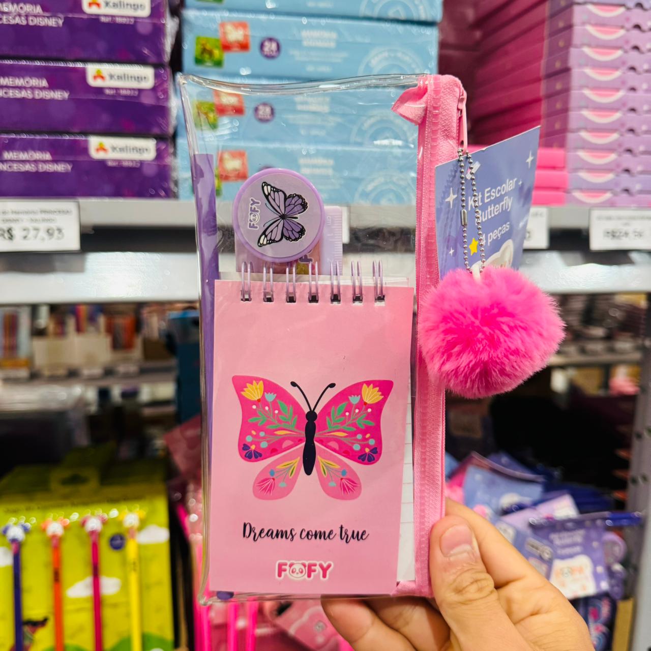 Kit escolar BUTTERFLY - KIT 4 PEÇAS - FOFY