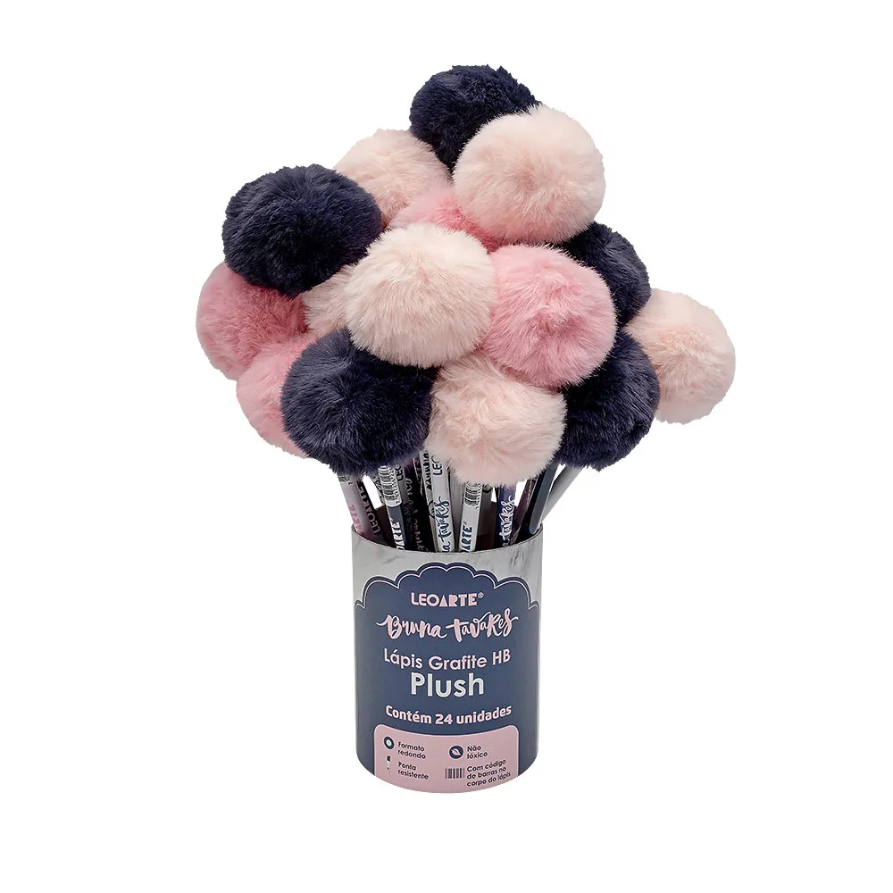 Além disso, o lápis vem com uma fofura a mais que vai conquistar a todos: um lindo pompom na ponta, deixando o lápis muito mais criativo e delicado. São 3 cores de pompom: rosa, pink e azul.